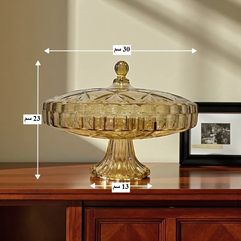 - يأتي الطبق بأبعاد مثالية للتقديم، حيث يبلغ ارتفاعه الكلي 23 سم وقطره 30 سم، مع قاعدة متينة بقطر 13 سم لتوفير أقصى درجات الثبات.