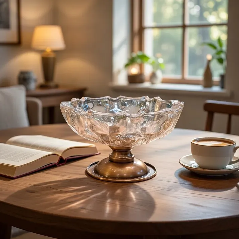 طبق المكسرات الكلاسيكي: سحر الكريستال وتفاصيل المعدن باللون النحاسي العتيق