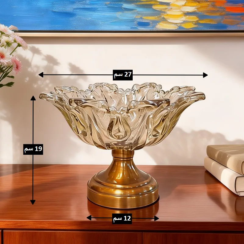 طبق فواكه كريستال كلاسيكي بقاعدة ذهبية، قطر 28 سم، موديل 030834