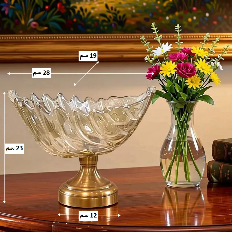 طبق فواكه كريستال كلاسيكي بقاعدة ذهبية، قطر 28 سم، موديل 030361