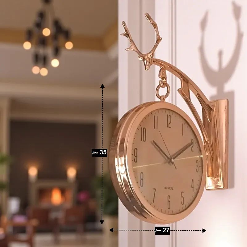 ساعة حائط محطة ذهبية ذات وجهين فاخرة بتصميم غزال، موديل 030341