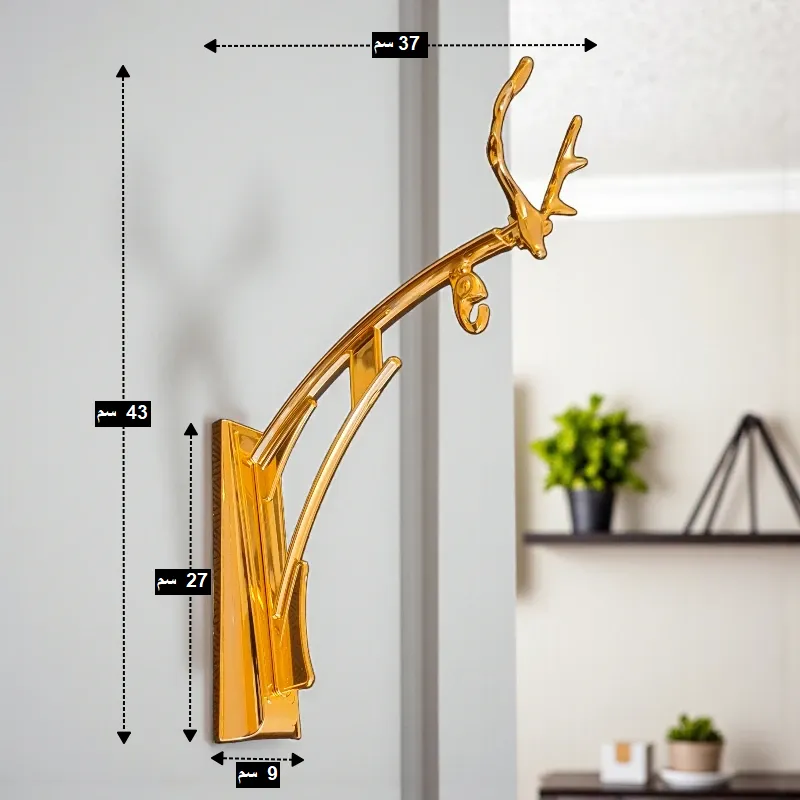 • أما حامل التعليق بتصميم الغزال فيبلغ عرضه 37 سم، وارتفاعه الكلي 43 سم، مع قاعدة تثبيت على الحائط بارتفاع 27 سم وعرض 9 سم.