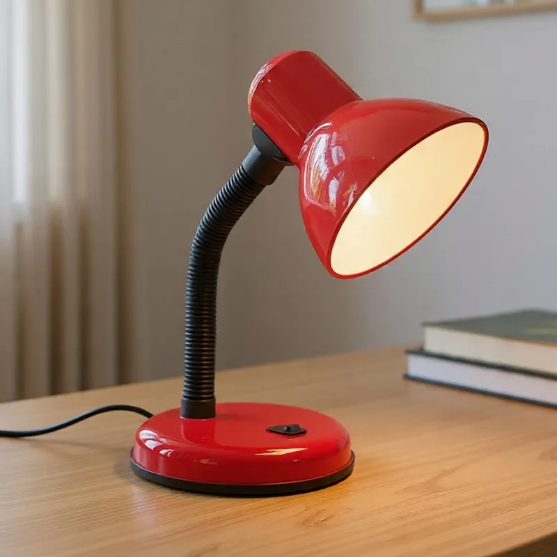 اجعل ساعات العمل والقراءة أكثر راحة مع هذه الاباجورة المكتبية التي تجمع بين البساطة والوظيفة العالية. تتميز بهيكل قوي وطلاء أحمر لامع يضيف لمسة احترافية إلى مساحة عملك.