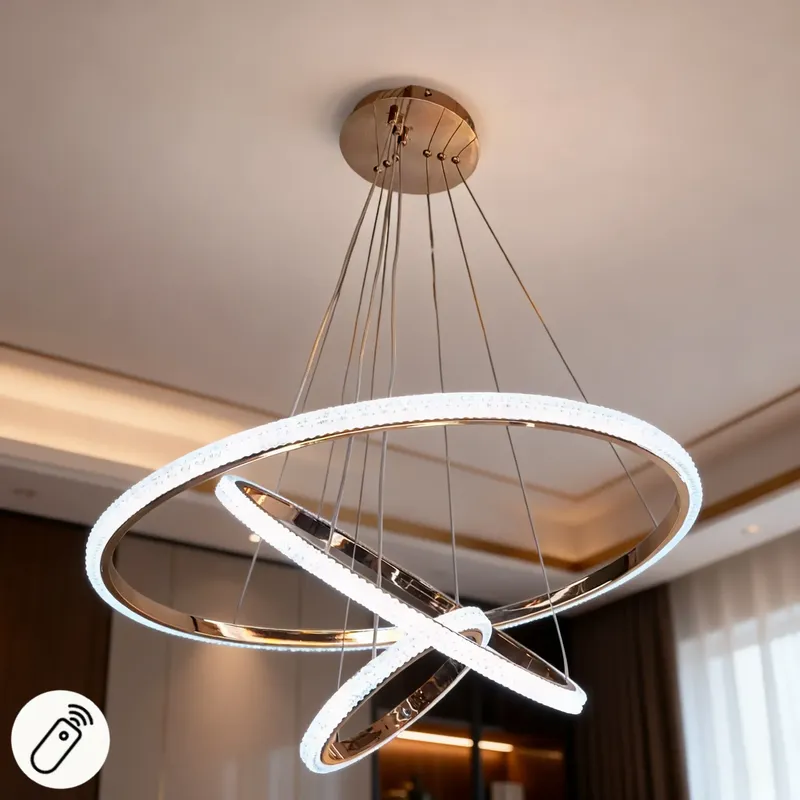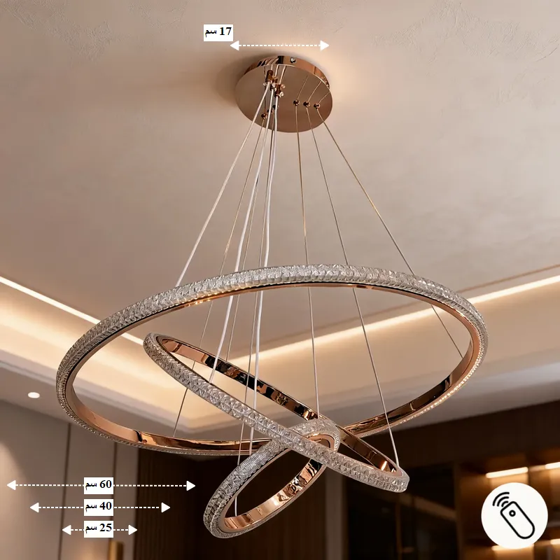 نجفة ليد 3 حلقات ذهبية: فخامة عصرية وتحكم ذكي بالإضاءة