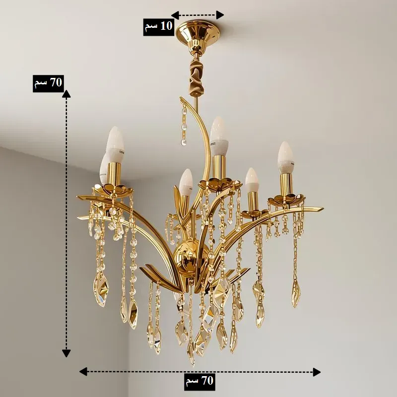 - عدد اللمبات: 6 لمبات (قلاووظ رفيع E14) تتيح لك اختيار درجة لون الإضاءة (أبيض أو ورم) وكثافتها حسب رغبتك.