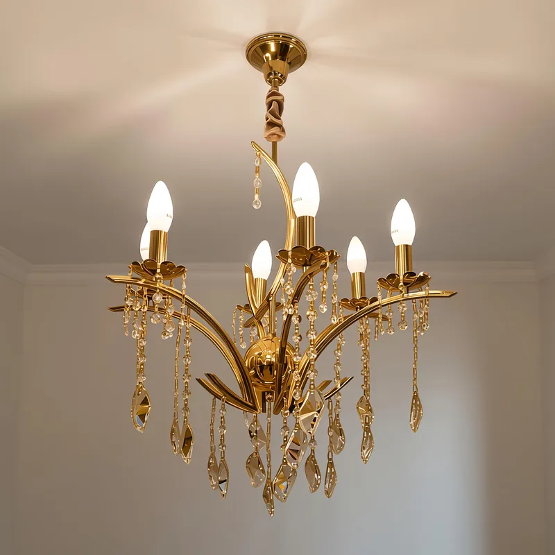 - ثنائي الجودة (قنديل & عصفور): يتميز الهيكل المعدني للنجفة بصناعته في مصانع “قنديل”، مما يضمن لك طلاءً ذهبياً ثابتاً. أما “كريستال عصفور” الأصلي، فهو يضمن لك تلالؤاً لا يضاهى بمجرد تشغيل الإضاءة.