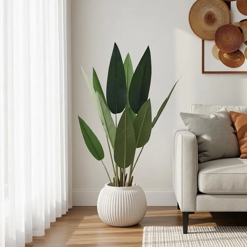 - امنح منزلك أو مكتبك إطلالة ملكية مستوحاة من الطبيعة الاستوائية مع شجرة عصفور الجنة (Strelitzia) الصناعية.