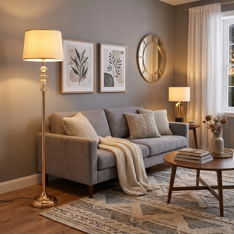 • أضف لمسة من الفخامة الكلاسيكية إلى زاوية غرفتك مع هذا اللمبادير الذهبي الأنيق.