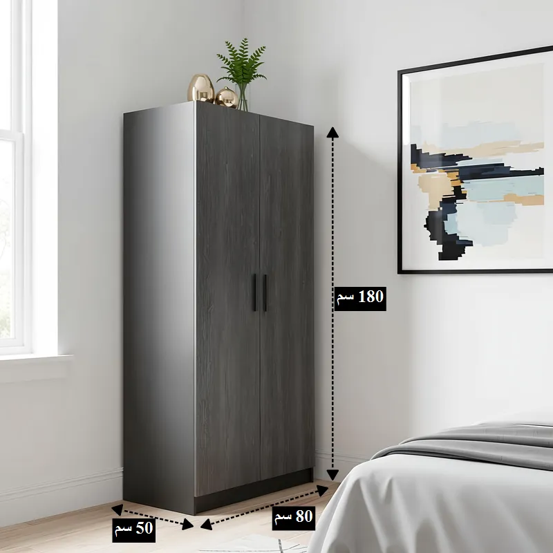 دولاب مودرن خشب MDF بابين، ملمس خشبي طبيعي، عرض 80 سم، موديل 030577