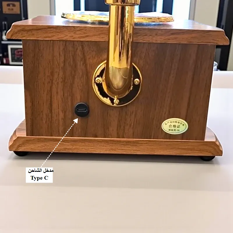 • يتميز بتصميم كلاسيكي أيقوني بمكبر الصوت المخروطي النحاسي اللامع وقاعدة خشبية فاخرة، ليمنح أي زاوية في منزلك أو مكتبك طابعاً راقياً. الجهاز مصنوع من النحاس النقي والأخشاب الصلبة المستوردة عالية الجودة، بلون بني أنيق يناسب جميع الديكورات.