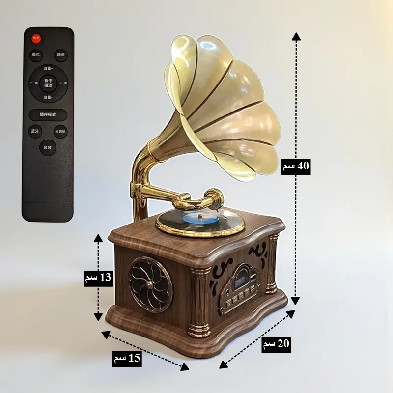 جراموفون كلاسيكي مصغر باللون الخشبي والنحاسي مع خاصية البلوتوث و USB