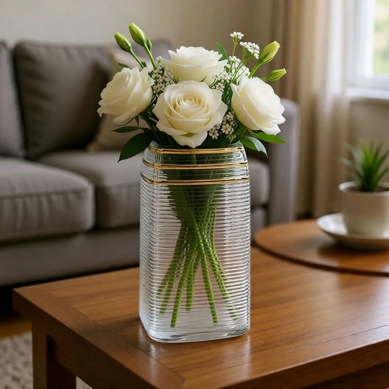 - هذه الفازة مثالية لعرض سيقان الزهور الطويلة والمفردة، أو باقات الورد البيضاء التي تبرز تفاصيلها. ضعها على مكتب، أو طاولة جانبية، أو رف كتب لإضافة لمسة ديكور أنيق.