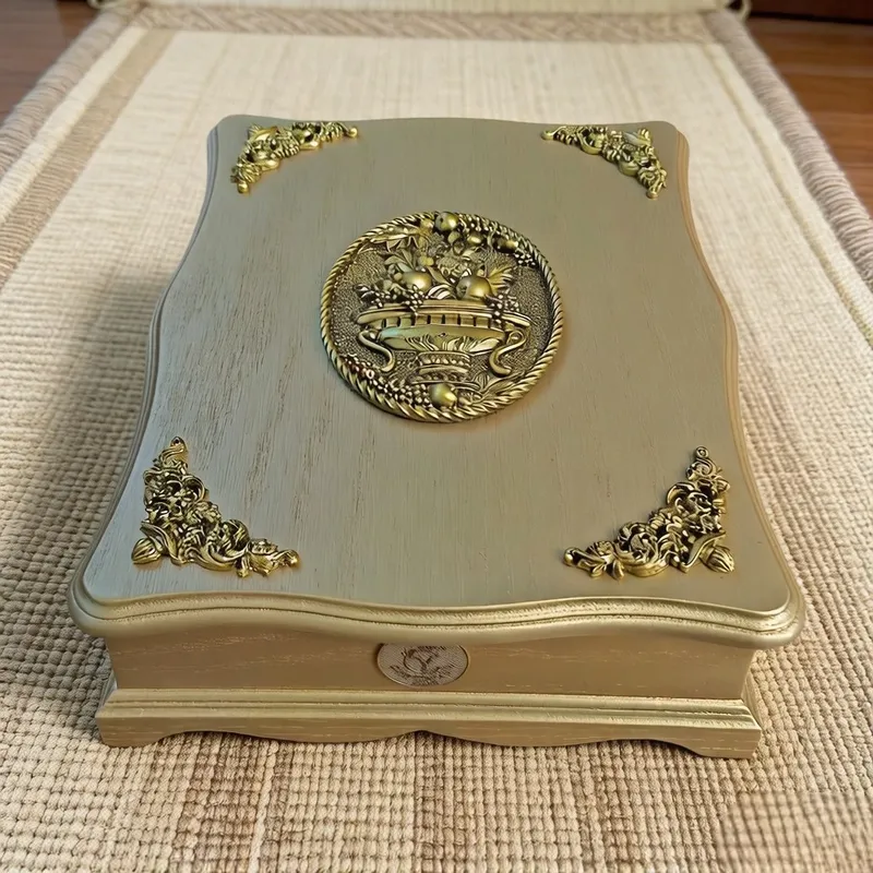 • مزين بزخارف نحاسية بارزة تضفي لمسة من الوقار والجمال.