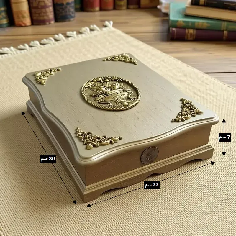 • يحتوي الصندوق على إغلاق آمن، مما يضمن حماية المصحف من الغبار والأتربة.
